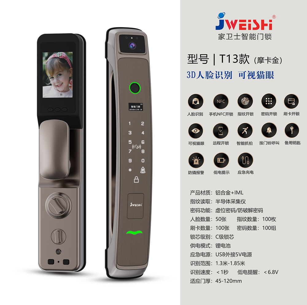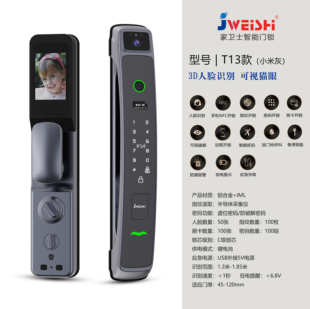 • 开锁方式:人脸,手机远程解锁,指纹,密码,刷卡,钥匙,微信小程序;