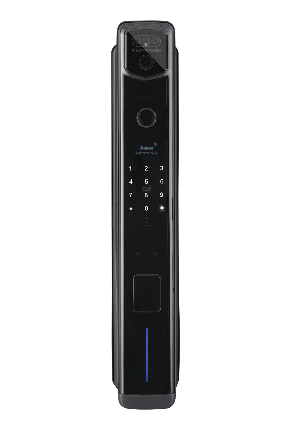 - 猫眼、防撬报警、虚位密码防窥视、延时自动上锁、逗留抓拍、主动监控、低电量报警、AI语音提示、支持多国语言