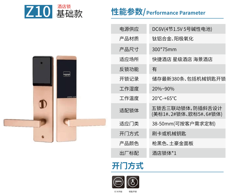开锁方式:刷卡、机械钥匙、TTHOTEL APP、TTLOCK APP